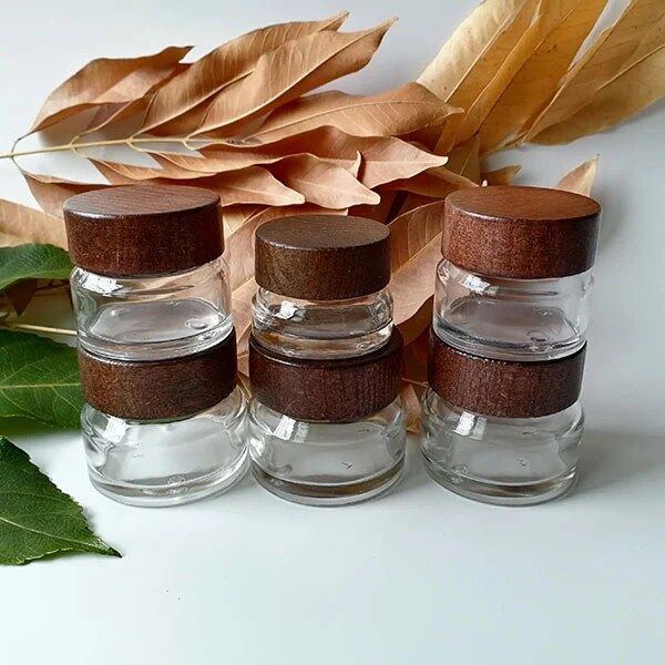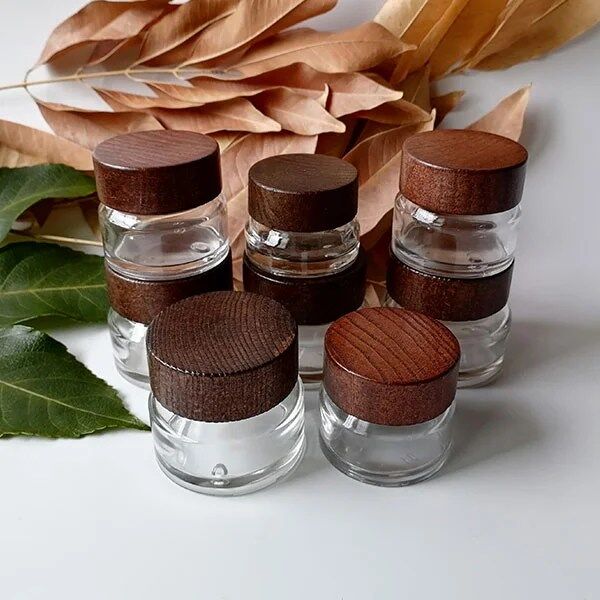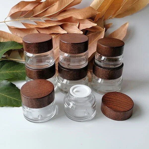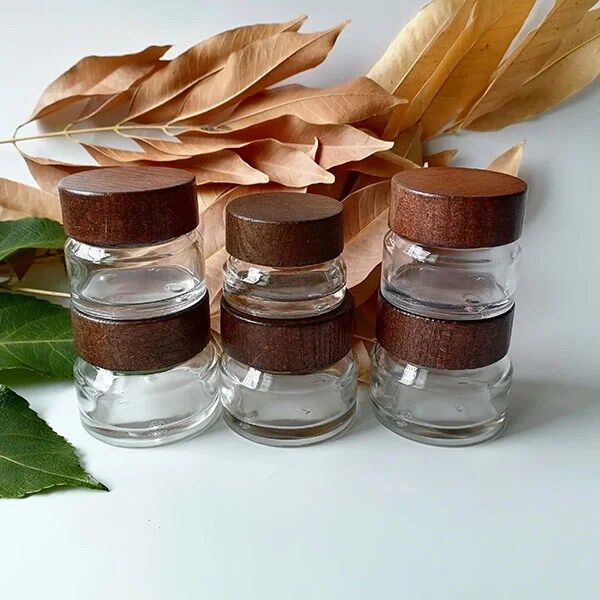 15g 30g 50g Clear Glass Cream Jar, Travel Cream Bottle for Face Cream Lotion, Eye Cream Bottle, Cosmetic Container with Natural Wood Lids