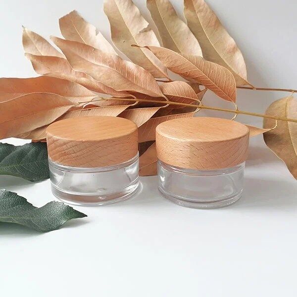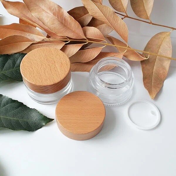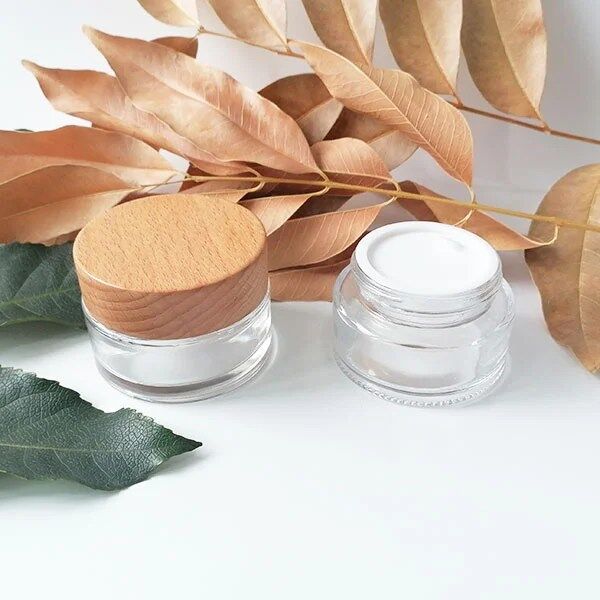 50g Clear Glass Cream Bottle, Face Cream Jars Cosmetic Container Natural Wood Lid for thick moisturizer, skin cream, travel lotion container