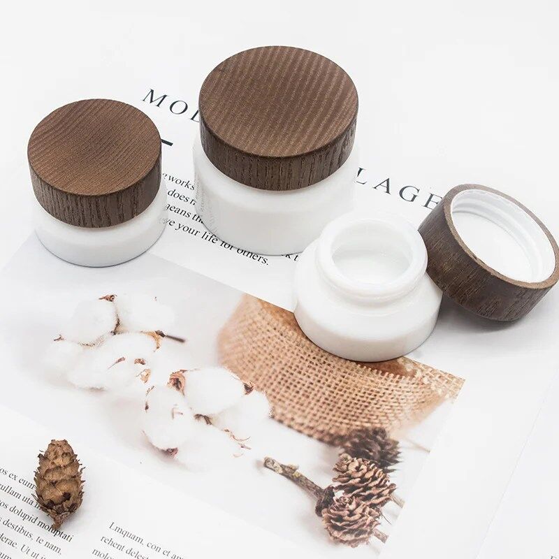 The Empty Glass Cream Jars is made of high-quality glass and natural wood lid. It has a wide mouth and thick walls. It is easy to fill and refill, safe and durable. The material is sturdy and durable, and the mouth is wide, which can better store skin care products such as face creams, mud masks, hand creams, body lotions, blushes, body scrubs, essences, etc. It is an ideal choice for DIY cosmetics and packaging.