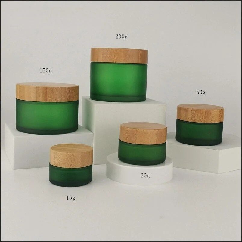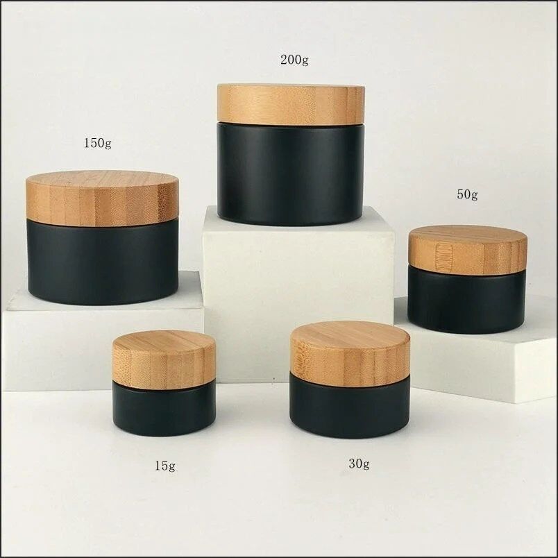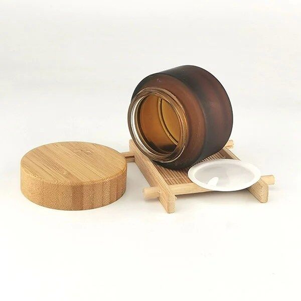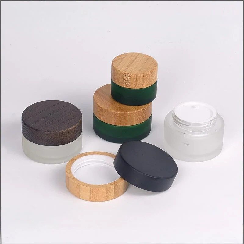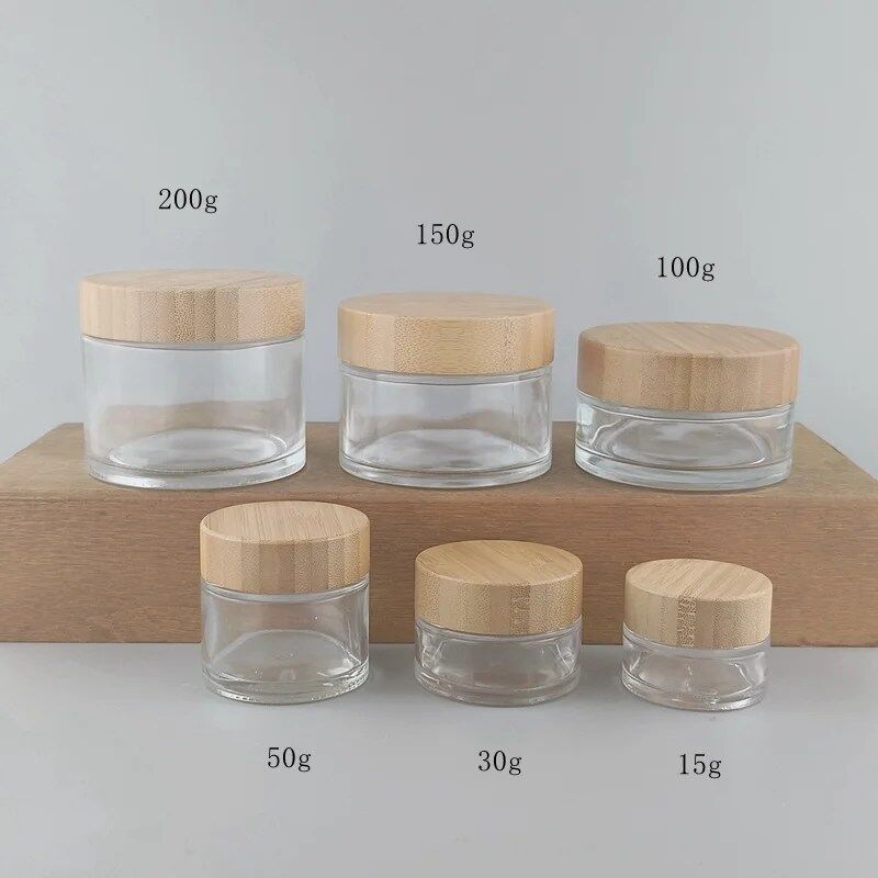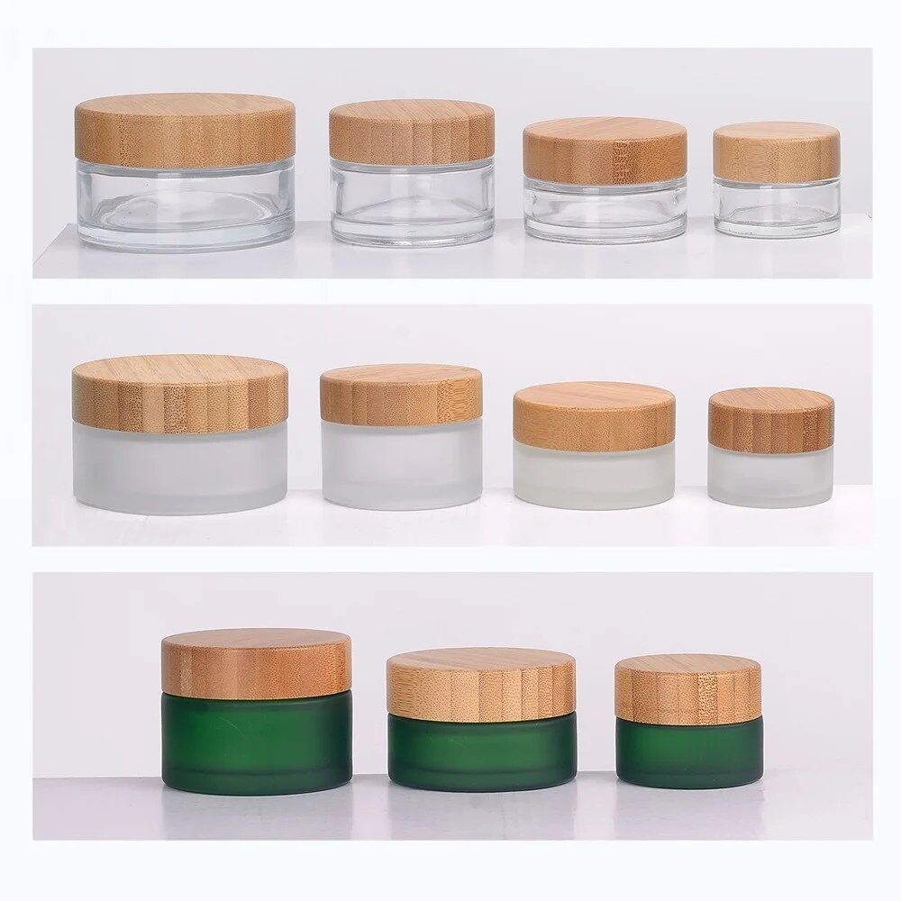 Glass Refillable Cosmetic Jars, glass cosmetic Jars with natural wood lids is crafted from high-quality thick and durable glass,each jar comes with a inner liner.