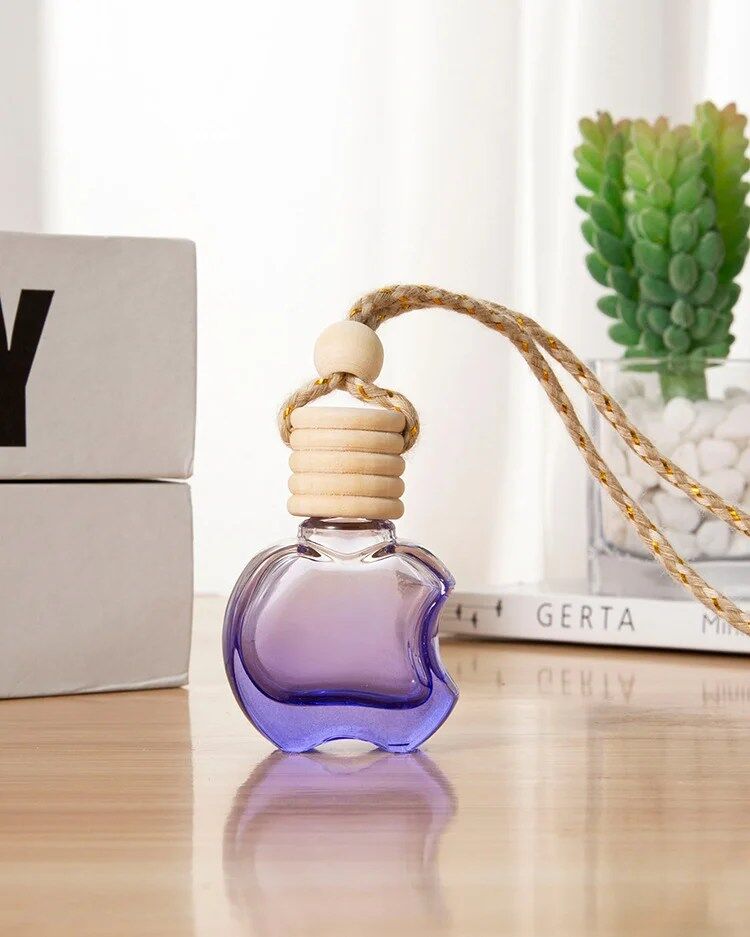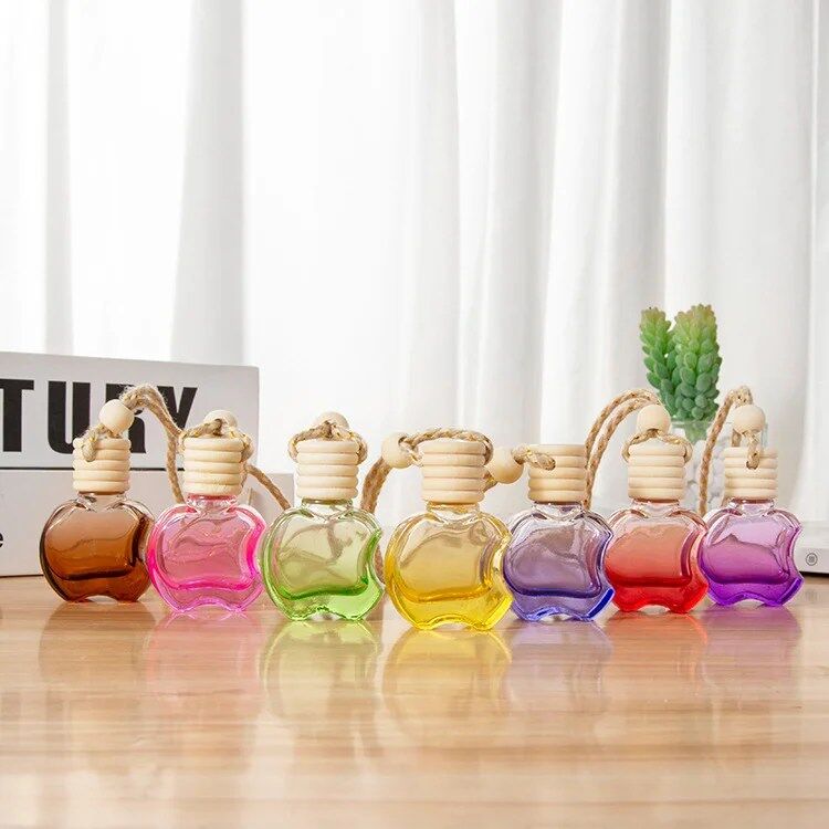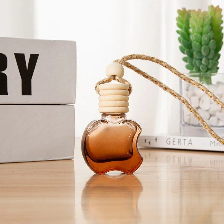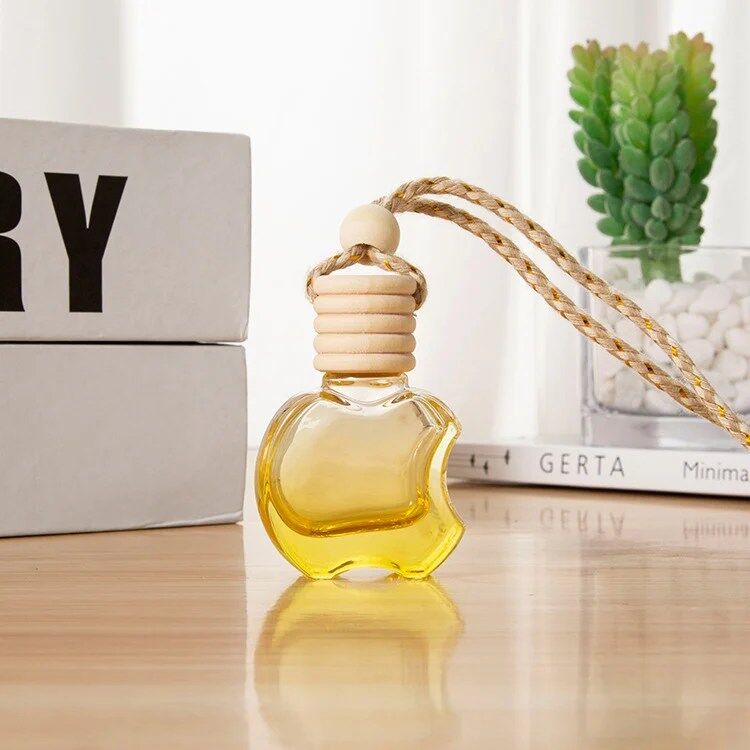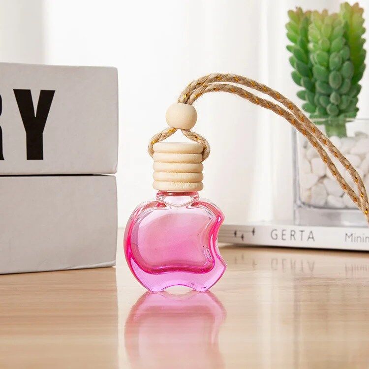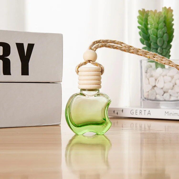 Hanging Car Air Freshener Car Diffuser Bottles Empty Glass Perfume Bottles Air Freshener Diffuser Bottle Pendant for Essential Oils Fragrance Aromatherapy Bottle Ornament (Clear,apple)